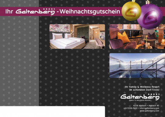 Diese kleine Aufmerksamkeit soll dein Herz erwärmen, deine Augen zum Strahlen bringen und dir ein Lächeln ins Gesicht zaubern. <br>Nimm dir eine kleine Auszeit und lass dich verwöhnen...<br><br>Genieße eine wundervolle Zeit im Galtenberg Family & Wellness Resort in Alpbach